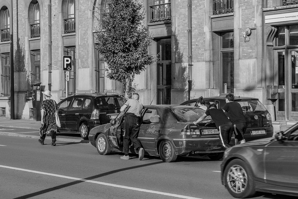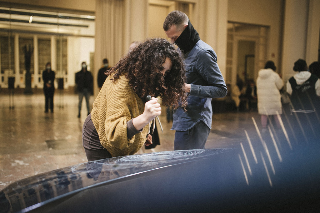 From WIELS to Recyclart, LaVallée to Weststation, each stop added new voices. Scar the Car culminated in a public procession: the car was pushed through the streets from Gare del’Ouest to KANAL – Centre Pompidou, located in the former Citroën showroom. There, under the monumental industrial roof, the car-turned-sculpture reached its symbolic final destination, only to be cut into pieces. Its fragments, its scars, were preserved in the form of a book.