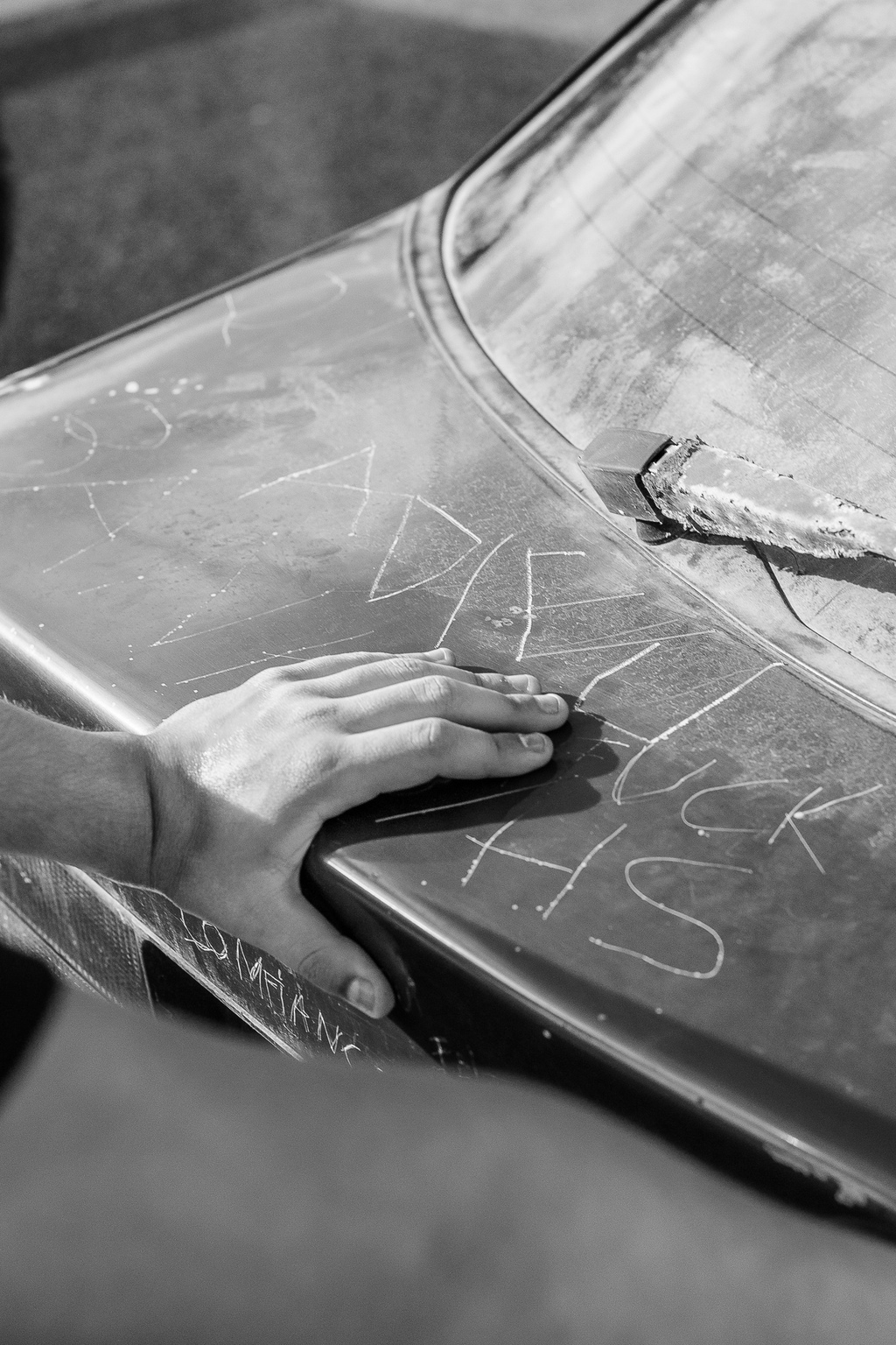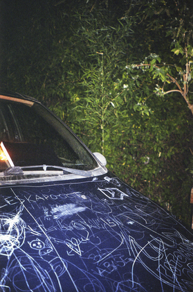 Vanuytven transformed discarded vehicles into vessels for collective mourning. Using simple tools, visitors were invited to scratch words, phrases, or symbols into the car's bodywork. What once was vandalism became ritual. Destruction became expression.